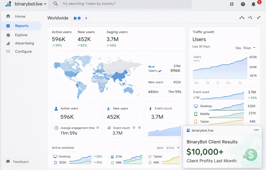 The BinaryBot platform continues to grow as more traders explore automation. Analytics show strong engagement from users who rely on trading bots and automation tools to improve their trading workflow.
